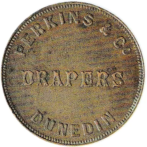 Obverse lettering PERKINS & CO. DRAPERS DUNEDIN