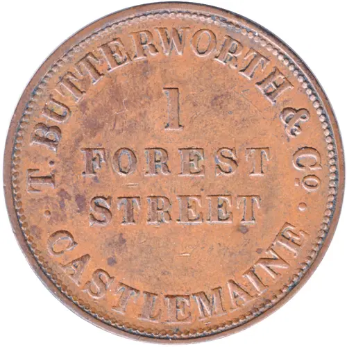 | Obverse lettering | T. BUTTERWORTH & Co. 1 FOREST STREET CASTLEMAINE |