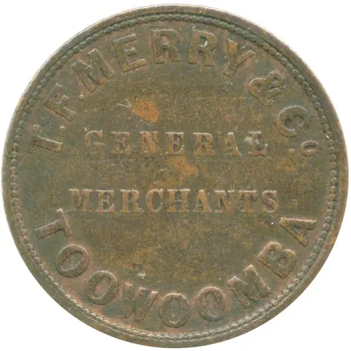 | Opis líce | T.F.MERRY & CO. GENERAL MERCHANTS TOOWOOMBA |
