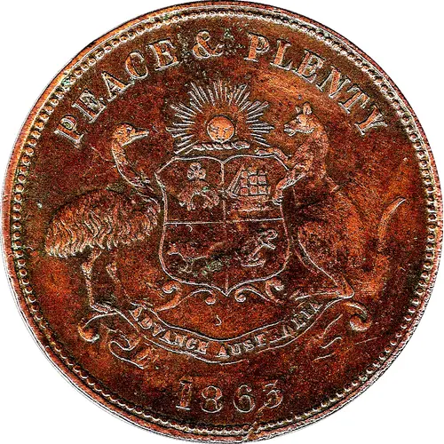 | Obverse lettering | PEACE & PLENTY ADVANCE AUSTRALIA 1863 |