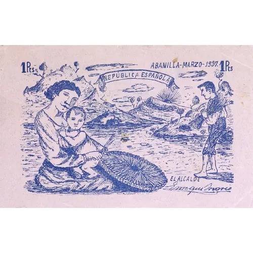 1 Pts. ABANILLA - MARZO - 1937 REPÚBLICA ESPAÑOLA (Translation: 1 Peseta Abanilla - March - 1937 Spanish Republic) |