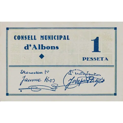 CONSELL MUNICIPAL d`Albons 1 PESSETA (Translation: Municipal Council of Albons 1 Peseta) |