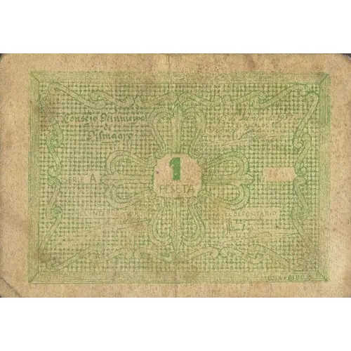 正面铭文 Consejo Municipal de Almagro 15 de Junio de 1937. 1 PESETA