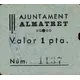 AJUNTAMENT ALMATRET Valor 1 pta. Núm. (Translation: City Council Almatret Value 1 Peseta Núm.) |