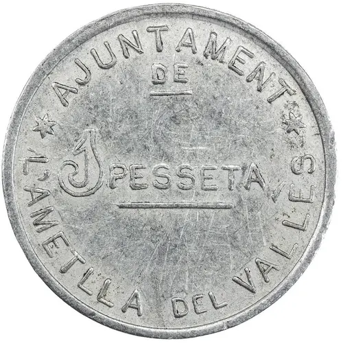 | Obverse lettering | AJUNTAMENT DE *L`AMETLLA DEL VALLÈS* 1 PESSETA (Translation: City Council of l`Ametlla del Vallès 1 Peseta) |