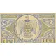 Vorderseitenbeschreibung Blue and yellow banknote with some legend in red and floral designs on the sides