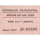 | Obverse lettering | CONSEJO MUNICIPAL ARENAS DE SAN JUAN Vale por 1 peseta Junio, 1937 (Translation: Municipal Council Arenas de San Juan Valid for 1 Peseta June, 1937) |