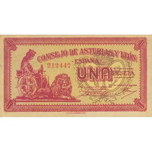 | Obverse lettering | 1 CONSEJO DE ASTURIAS Y LEÓN ESPAÑA UNA PESETA (Translation: Council of Asturias and Leon Spain One Peseta) |