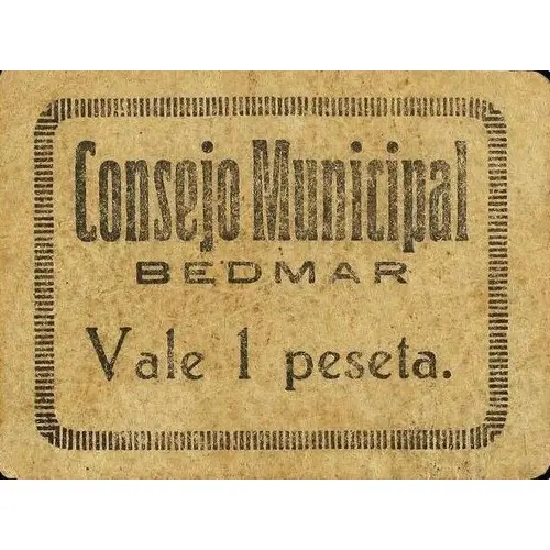 Consejo Municipal BEDMAR Vale 1 peseta. (Translation: Municipal Council Bedmar It is worth 1 Peseta) |