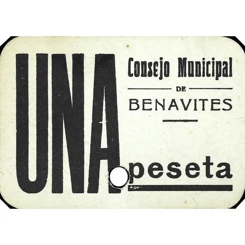 UNA peseta Consejo Municipal DE BENAVITES (Translation: One Peseta Municipal Council of Benavites) |