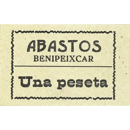 ABASTOS BENIPEIXCAR Una peseta (Translation: Supplies Benipeixcar One Peseta) |