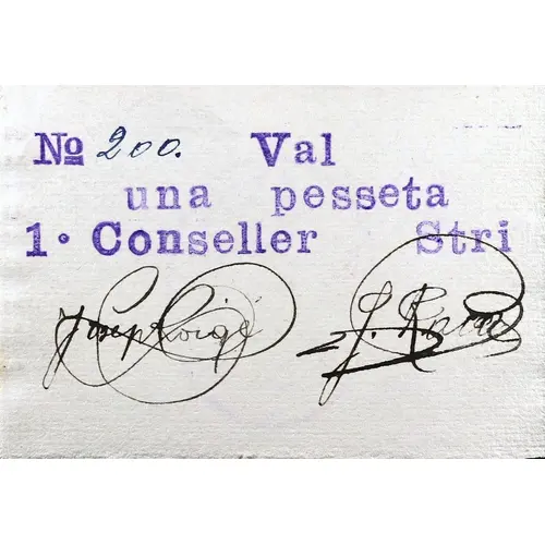 Val una pesseta 1 · Conseller Stri (Translation: It`s worth One Peseta 1st Councilor Secretary) |