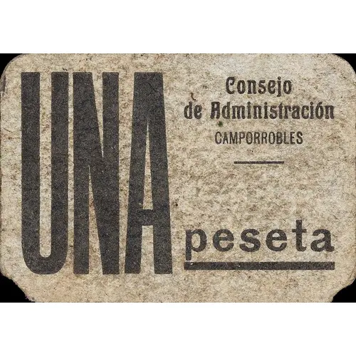 UNA peseta Consejo de Administración CAMPORROBLES (Translation: One Peseta Administrative Council Camporrobles) |