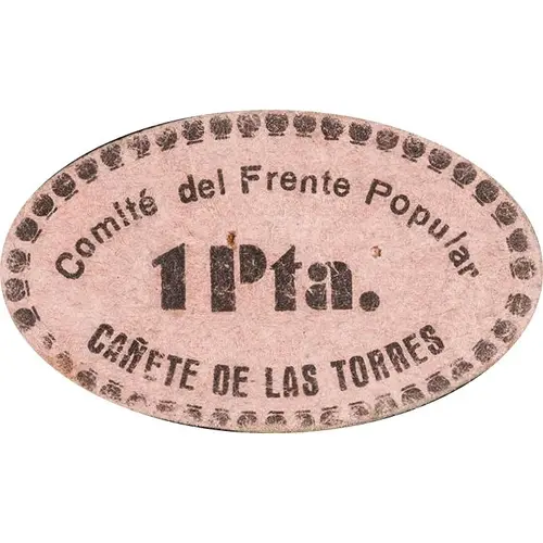| Obverse lettering | Comité del Frente Popular 1 Pta. CAÑETE DE LAS TORRES (Translation: Popular Front Committee 1 Peseta) |