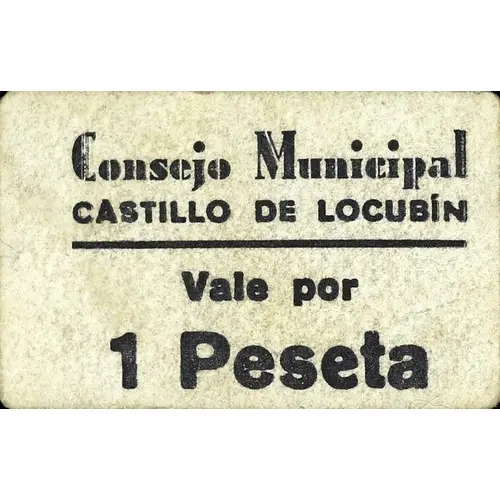 Consejo Municipal CASTILLO DE LOCUBÍN Vale por 1 Peseta (Translation: Municipal Council Castillo de Locubin Voucher for 1 Peseta) |