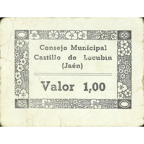 Consejo Municipal Castillo de Locubín (Jaén) Valor 1,00 (Translation: Municipal Council Castillo de Locubin (Jaén) Value 1.00) |