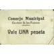 Consejo Municipal Caudete de las Fuentes Vale UNA peseta (Translation: Municipal Council Caudete de las Fuentes It`s worth One Peseta) |