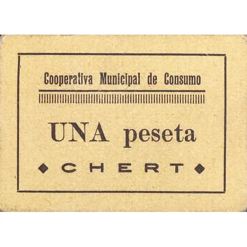Cooperativa Municipal de Consumo UNA peseta CHERT (Translation: Municipal Consumer Cooperative One Peseta Chert) |