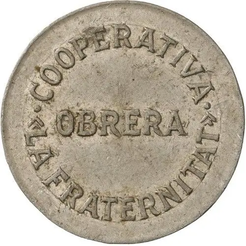 | Obverse lettering | · COOPERATIVA · OBRERA « LA FRATERNITAT » (Translation: Workers` Cooperative) |