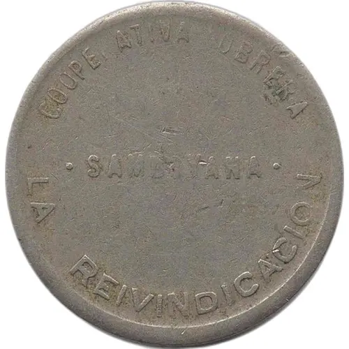 | Obverse lettering | COOPERATIVA OBRERA · SAMBOYANA · LA REIVINDICACION (Translation: Workers` Cooperative of Sant Boi `La Reivindicación`) |