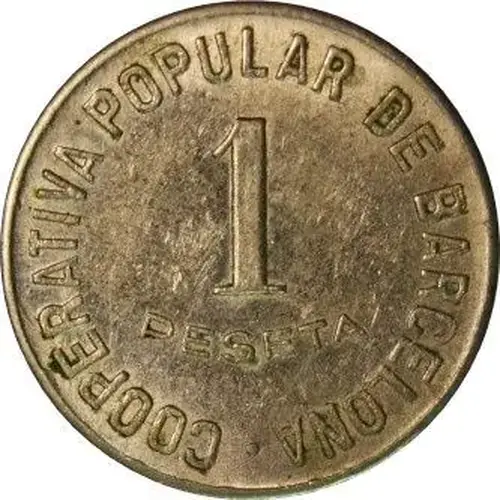 | Obverse lettering | 1 PESETA COOPERATIVA POPULAR DE BARCELONA (Translation: Popular Cooperative of Barcelona) |