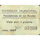 CONSEJO MUNICIPAL Fuenlabrada de los Montes Vale por 1 peseta Julio, 1937 (Translation: Municipal Council Fuenlabrada de los Montes Voucher for 1 Peseta July, 1937) |
