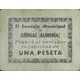 El Consejo Municipal DE GÉRGAL (ALMERÍA) Pagará al portador la cantidad de UNA PESETA (Translation: The Municipal Council of Gérgal (Almería) Will pay the bearer the amount of One Peseta) |