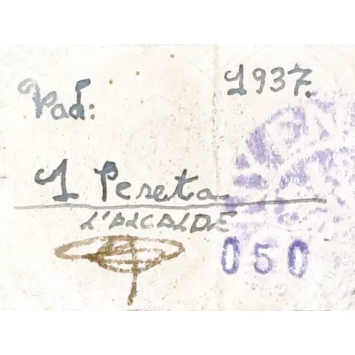 | Obverse lettering | 1937 Val: 1 Peseta L`ALCALDE (Translation: It is worth: 1 Peseta The Mayor) |