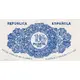 | Obverse description | Dark blue lettering and floral perimeter framing, with local coat of arms to the left |