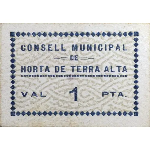 CONSELL MUNICIPAL de HORTA DE TERRA ALTA VAL 1 PTA. (Translation: Municipal Council of Horta de Terra Alta Voucher 1 Peseta) |