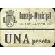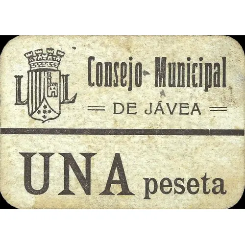 Consejo Municipal DE JÁVEA UNA peseta (Translation: Municipal Council of Jávea One Peseta) |