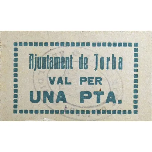 Ajuntament de Jorba VAL PER UNA PTA. (Translation: City Council of Jorba Voucher for One Peseta) |