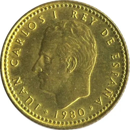 | Obverse lettering | JUAN CARLOS I REY DE ESPAÑA 1980 (Translation: Juan Carlos I King of Spain) |