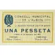 CONSELL MUNICIPAL DE L`ALBIOL La dipositaria Municipal pagarà al portador UNA PESSETA L`Albiol 11 de Setembre del 1937. (Translation: Municipal Council of L`Albiol The Municipal Depositary will pay the bearer One Peseta L`Albiol, September 11, 1937.) |