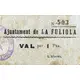 Ajuntament de LA FULIOLA VAL per 1 Pta. L`Alcalde, (Translation: City Council of La Fuliola Voucher for 1 Peseta The Mayor,) |