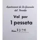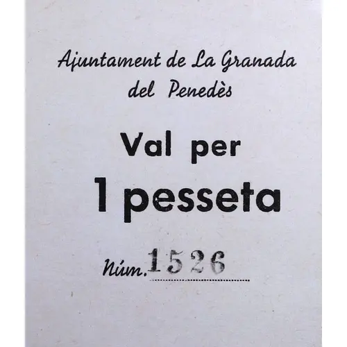 | Obverse lettering | Ajuntament de La Granada del Penedès Val per 1 pesseta (Translation: City Council of La Granada del Penedès Voucher for 1 Peseta) |