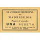 (Translation: The Municipal Council of Madridejos Will pay the bearer One Peseta This voucher is redeemable in goods at all businesses in this town.)