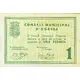 CONSELL MUNICIPAL D`OGASSA El Consell Municipal d`Ogassa reconeix a favor del portador la quantitat de UNA PESSETA 1 (Translation: Municipal Council of Ogassa The Municipal Council of Ogassa recognizes in favor of the bearer the amount of One Peseta) |