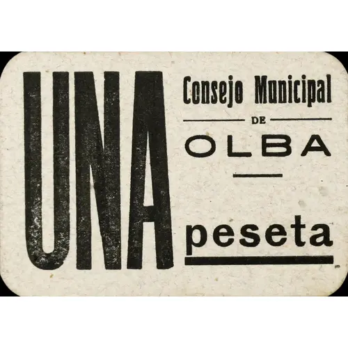 Consejo Municipal DE OLBA UNA peseta (Translation: Municipal Council of of Olba One Peseta) |