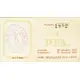 | Obverse description | Brown lettering and simple line perimeter framing, background of two-tone green squares |
