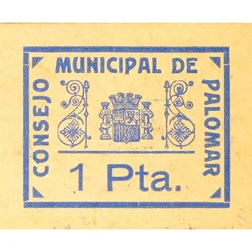 CONSEJO MUNICIPAL DE PALOMAR 1 Pta. (Translation: The Municipal Council of Palomar 1 Peseta) |