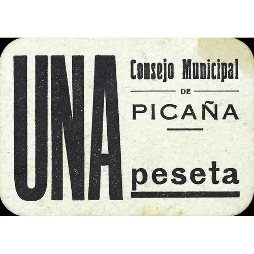 UNA peseta Consejo Municipal DE PICAÑA (Translation: One Peseta Municipal Council of Picaña) |