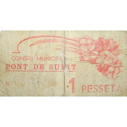 CONSELL MUNICIPAL PONT DE SUERT 1 PESSETA (Translation: Municipal Council Pont de Suert 1 Peseta) |
