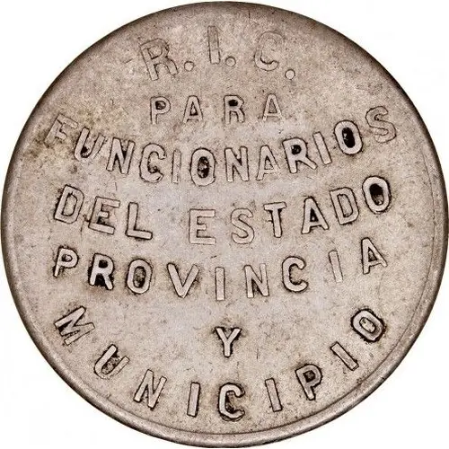 | 表面の銘文 | R.I.C. PARA FUNCIONARIOS DEL ESTADO PROVINCIAL Y MUNICIPAL (Translation: Royal Cooperative Institution for State, Provincial and Municipal Officials) |