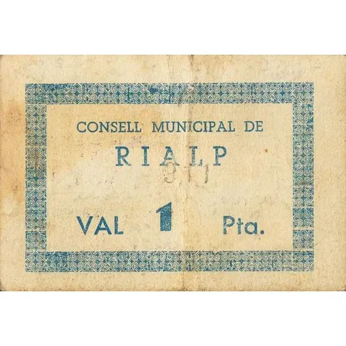 Consell Municipal de RIALP Val 1 Pta. (Translation: Municipal Council of Rialp Voucher 1 Peseta) |