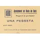 Ajuntament de Roda de Barà Pagarà al portador UNA PESSETA ANY 1937. Aquest val serà vàlid fins que l`Ajuntament acordi retirar-lo (Translation: City Council of Roda de Barà Will pay the bearer One Peseta Year 1937 This voucher will be valid until the City Council agrees to withdraw it) |