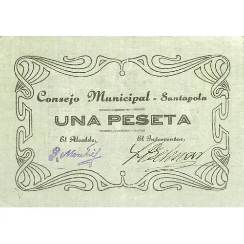 Consejo Municipal - Santapola UNA PESETA (Translation: Municipal Council - Santapola One Peseta) |