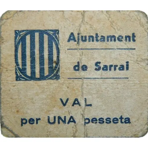 Ajuntament de Sarral VAL per UNA pesseta (Translation: City Council of Sarral Valid for One Peseta) |