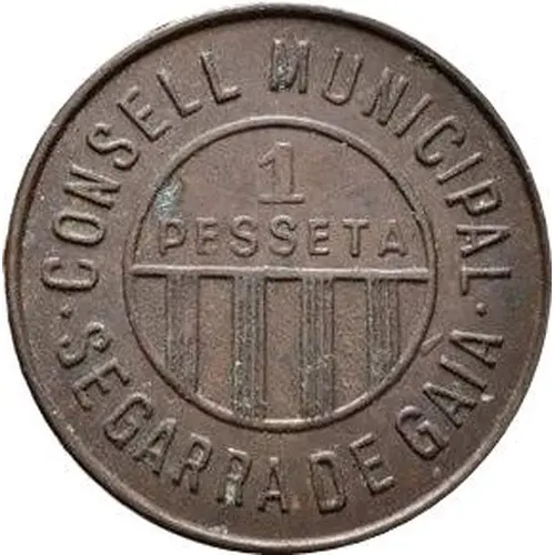 | Obverse lettering | CONSELL MUNICIPAL · SEGARRA DE GAIÀ · 1 PESSETA (Translation: Municipal Council Segarra de Gaià 1 Peseta) |