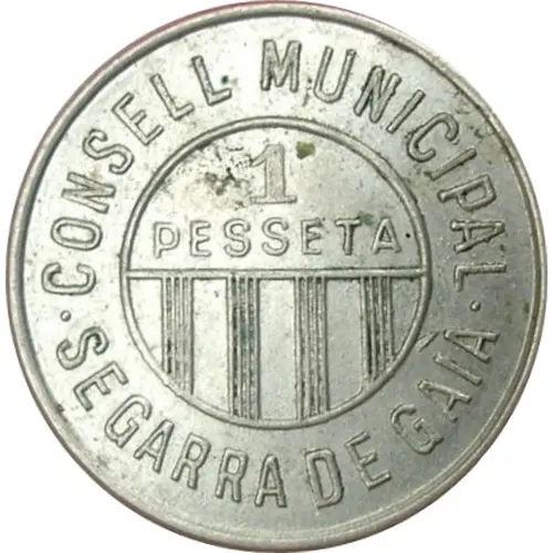 | Obverse lettering | CONSELL MUNICIPAL · SEGARRA DE GAIÀ · 1 PESSETA (Translation: Municipal Council Segarra de Gaià 1 Peseta) |